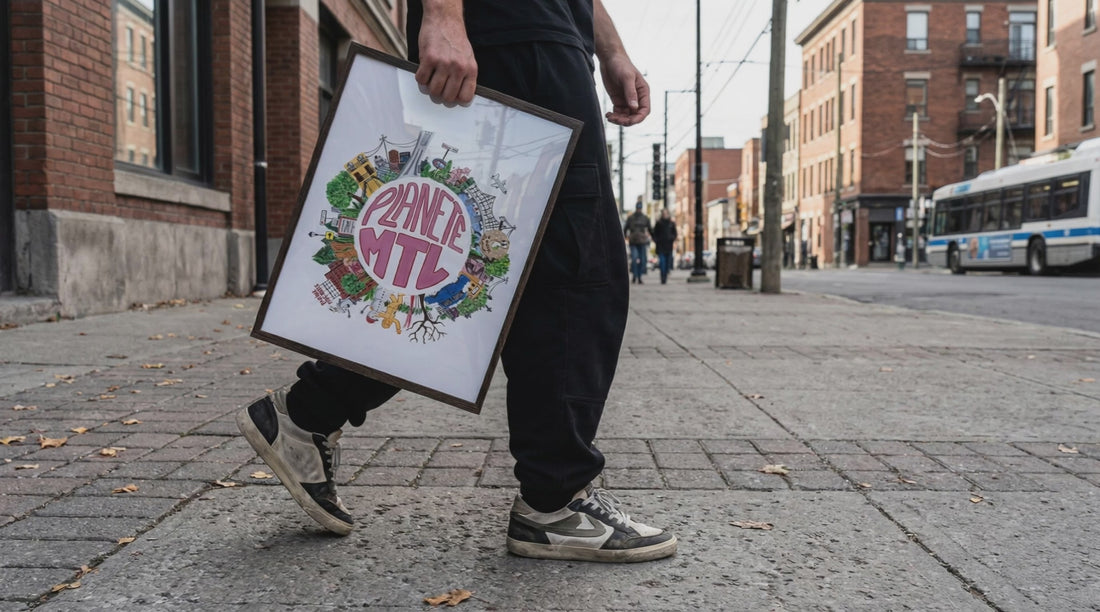 Il collabore avec LE CARTEL pour le modèle Planète MTL, une rencontre naturelle entre son univers et l’énergie montréalaise - un dialogue visuel entre ses racines parisiennes et sa ville d’adoption.
